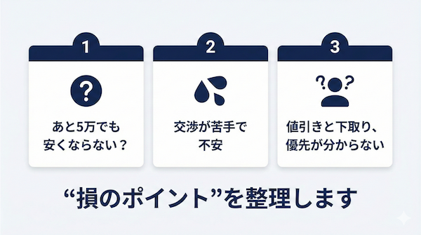 この金額以上に安くしようと何店舗も回るのは、時間と労力の無駄になりかねません。